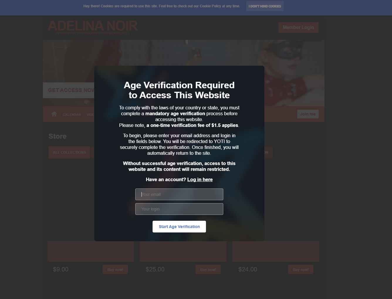 der Plattformanbieter modelcentro hat für meine Webseite adelina-noir.com eine Jugendschutz-Schranke mit Alter Verifizierung installiert. Dies gescha gegen meine Zustimmung. Viele Nuetzer aus Deutschland können die Seite nicht mehr ohne Verifizierung besuchen.